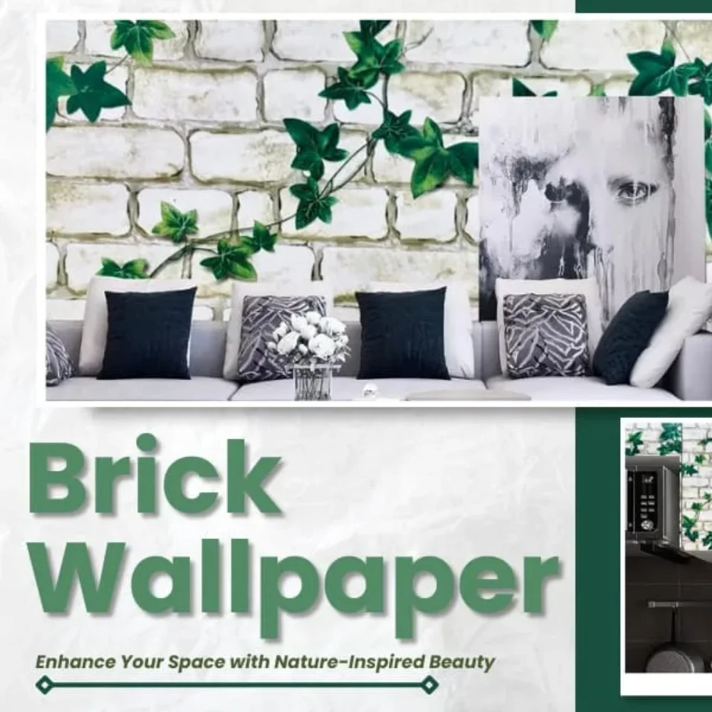 - Featuring a multi-color 3D nature theme, the wallpaper showcases a beautiful blend of white brick and leaf patterns. The subtle yet bold design makes it suitable for various styles of home decor, from minimalist to rustic.